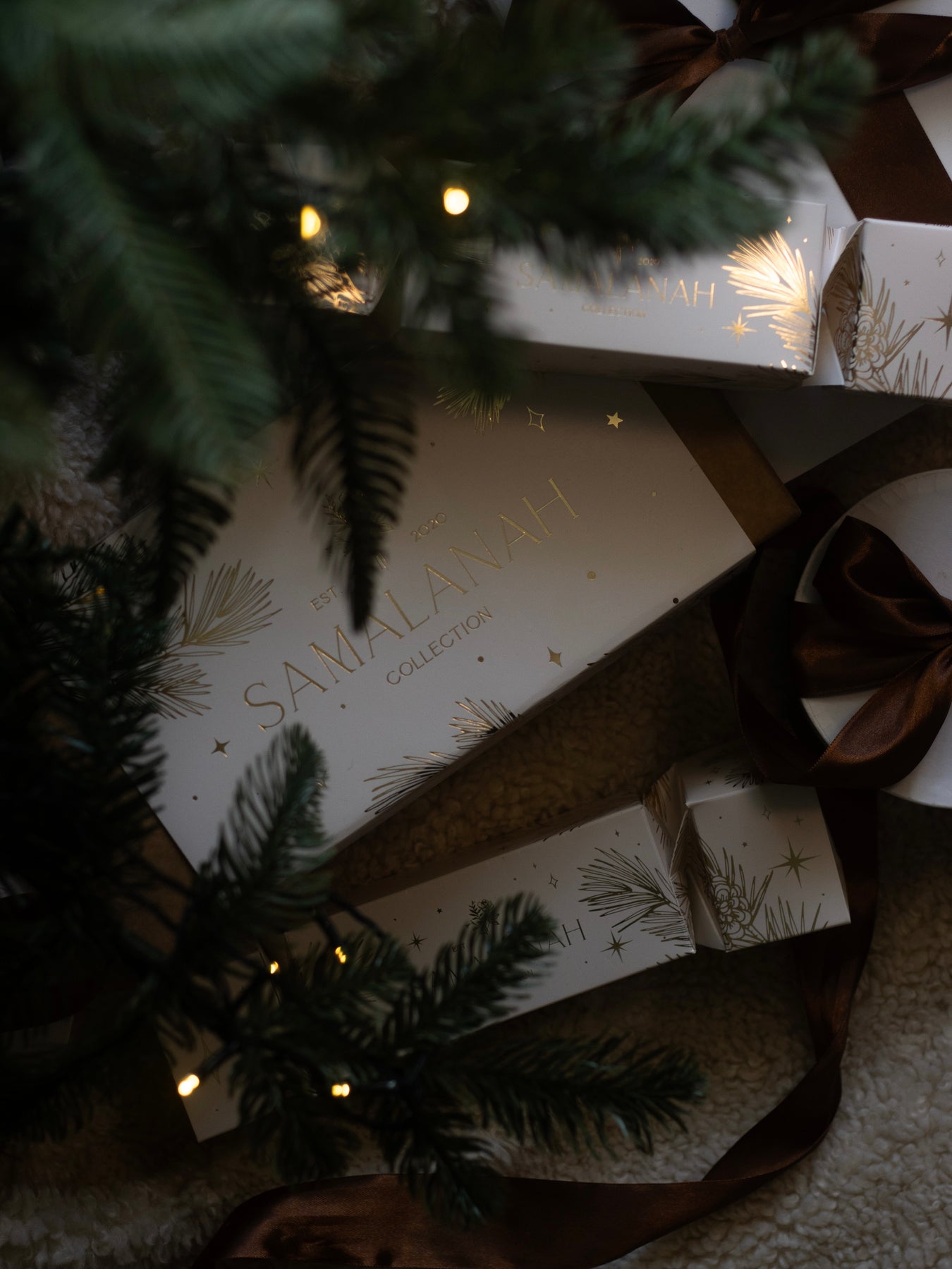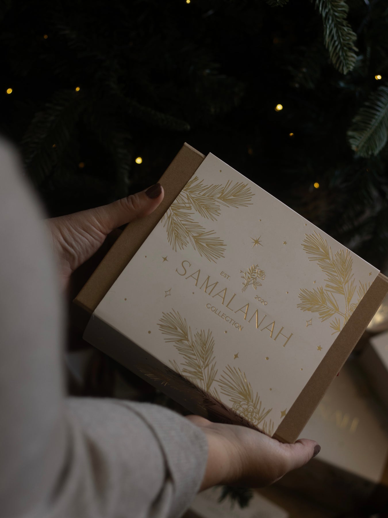 Each hamper is beautifully hand-packed in our branded kraft gift box, with every item nestled in soft, biodegradable wood wool. Finished with the option of organic cotton ribbon and a sprig of dried foliage or our limited edition gold foil sleeve - it’s a gift that feels as good as it looks.