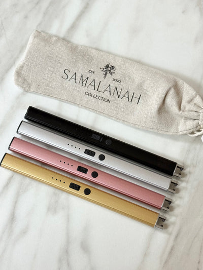 USB rechargeable for convenience and sustainability, each lighter comes beautifully presented in our branded Samalanah pouch ; ready to gift or keep close by for your own ritual moments.